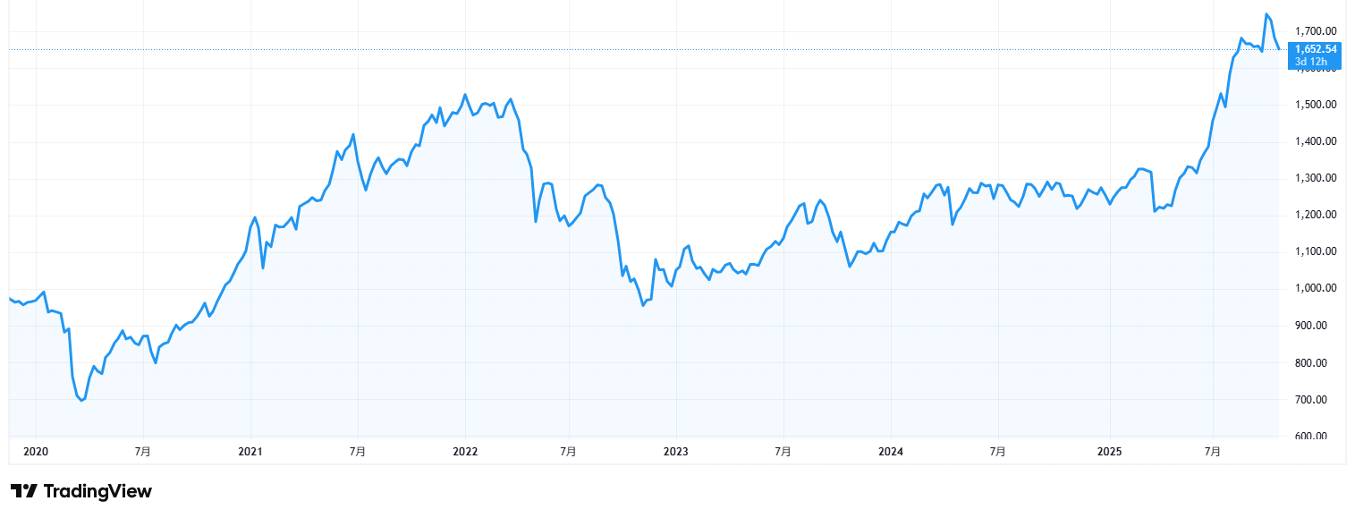 【直近5年のベトナム株の推移(出所:TradingView)】